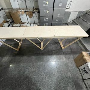 از پایه های تاشو چوبی مناسب در ساخت این میز کار و وزن سبک آن برای جابجایی آسان و باز وبسته کردن سریع از ویژه گی های اصلی میز می باشد. جنس چوب بدنه این محصول ضد واکنش با چسب کاغذ دیواری است و آسیبی به آن وارد نمی کند.